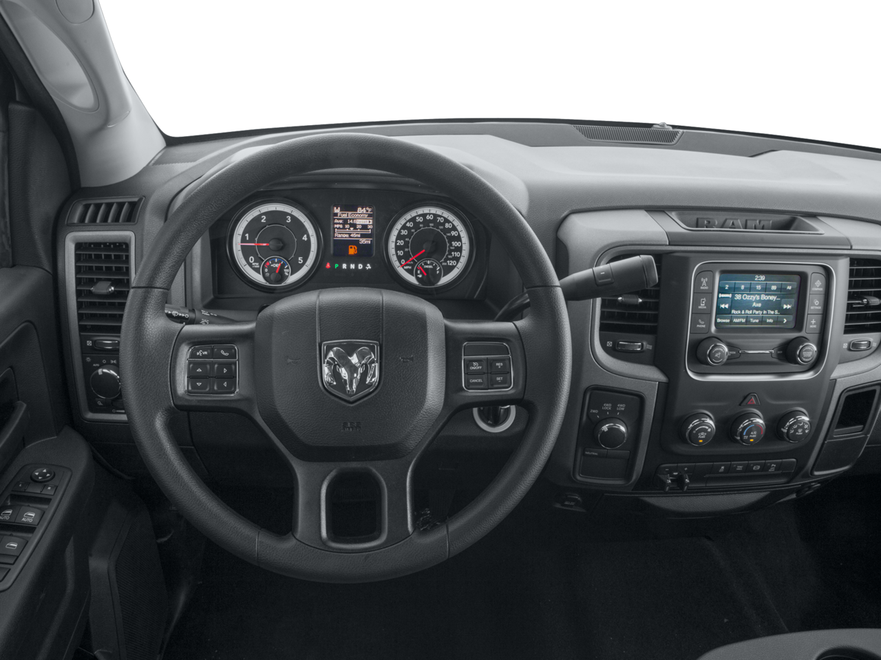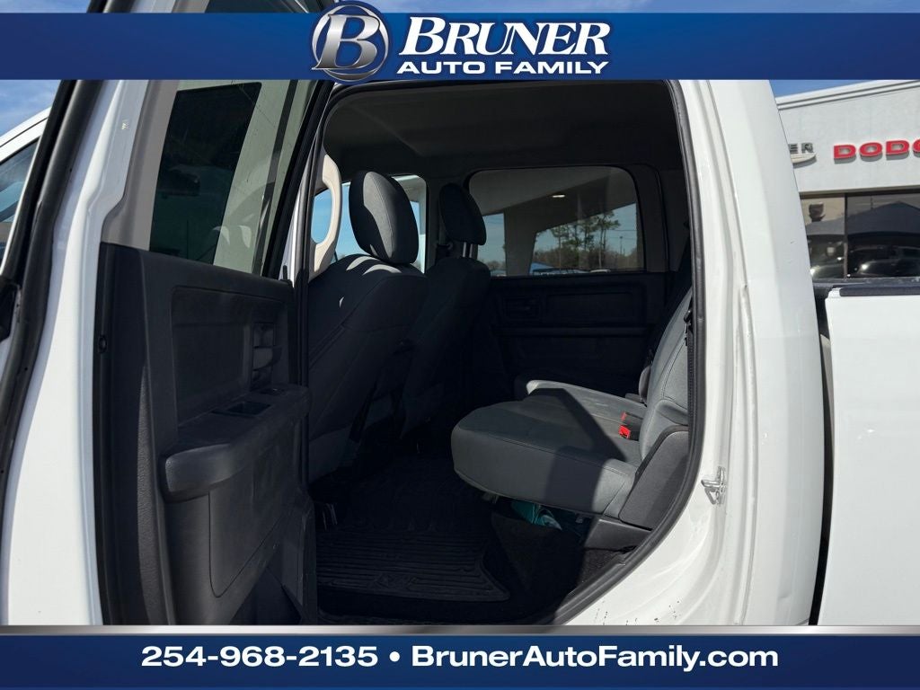 Chrome Appearance Group (Bright Front Bumper, Bright Grille, Bright Rear Bumper, and Wheels: 18 x 8.0 Steel Chrome Clad), Popular Equipment Group (1-Yr SiriusXM Radio Service, 40/20/40 Split Bench Seat, Carpet Floor Covering, Cloth 40/20/40 Bench Seat, For More Info, Call 800-643-2112, Front & Rear Floor Mats, No Satellite Coverage w/AK/HI, Rear Folding Seat, Remote Keyless Entry, and SiriusXM Satellite Radio), Protection Group, Quick Order Package 22A Tradesman (Front Armrest w/Cupholders and Storage Tray), 17 x 7.5 Steel Styled Wheels, 180 Amp Alternator, 3.73 Rear Axle Ratio, 4-Wheel Disc Brakes, 5.0 Touchscreen Display, 6 Speakers, ABS brakes, Air Conditioning, AM/FM radio, Anti-Spin Differential Rear Axle, Black Exterior Mirrors, Brake assist, Center Hub, Charge Only Remote USB Port, Delay-off headlights, Driver door bin, Dual front impact airbags, Dual front side impact airbags, Electric Shift-On-The-Fly Transfer Case, Electronic Stability Control, Electronically Controlled Throttle, Exterior Mirrors Courtesy Lamps, Exterior Mirrors w/Heating Element, Exterior Mirrors w/Supplemental Signals, Front & Rear Rubber Floor Mats, Front anti-roll bar, Front Bumper Sight Shields, Front Center Armrest, Fully automatic headlights, GPS Antenna Input, Heated door mirrors, Heavy Duty Vinyl 40/20/40 Split Bench Seat, Hemi Badge, Integrated Voice Command w/Bluetooth®, Locking Tailgate, Low tire pressure warning, Manual Adjust Seats, Media Hub (USB, AUX), Next Generation Engine Controller, Occupant sensing airbag, Overhead airbag, Overhead Console, ParkSense Rear Park Assist System, ParkView Rear Back-Up Camera, Passenger door bin, Power Black Trailer Tow Mirrors, Power door mirrors, Power steering, Power windows, Radio data system, Radio: 3.0, Radio: Uconnect 5.0, Rear seat center armrest, Rear step bumper, Rear View Auto Dim Mirror w/Display, Rear View Mirror w/Microphone, Rear Wheel Spats, Speed control, Tachometer, Temperature & Compass Gauge, Tilt steering wheel, Tip Start, Traction control, Trailer Brake Control, Trailer Tow Mirrors, Transmission Oil Cooler, Variably intermittent wipers, Vendor Painted Cargo Box Tracking, and Voltmeter.