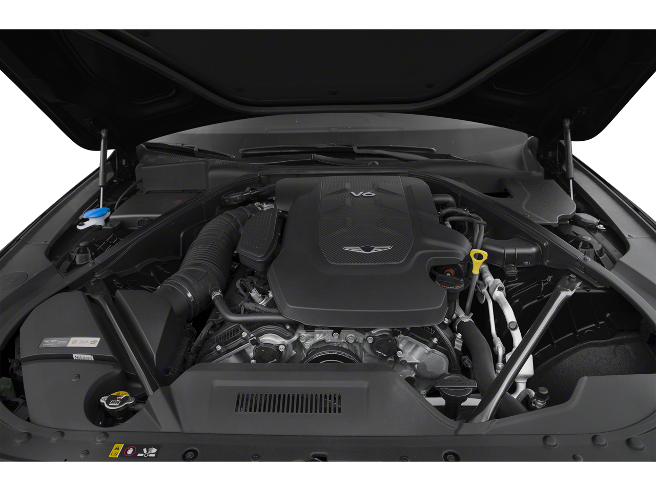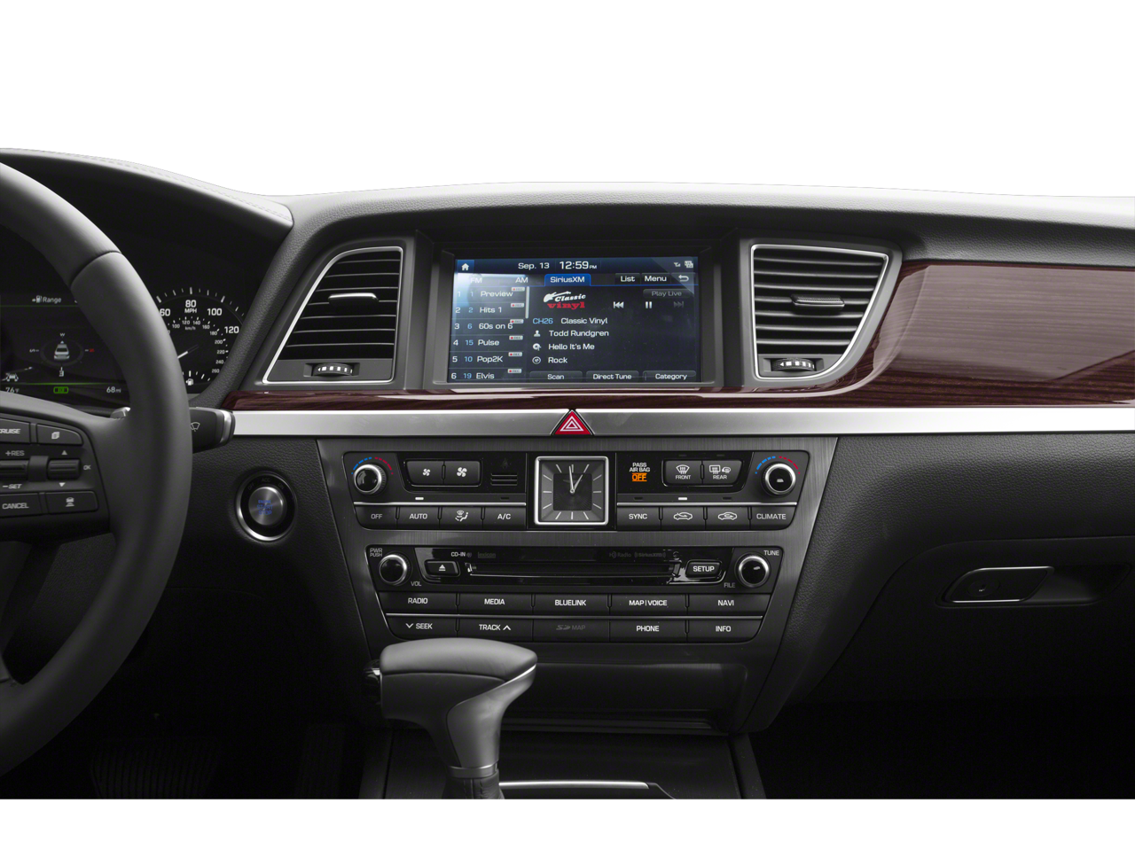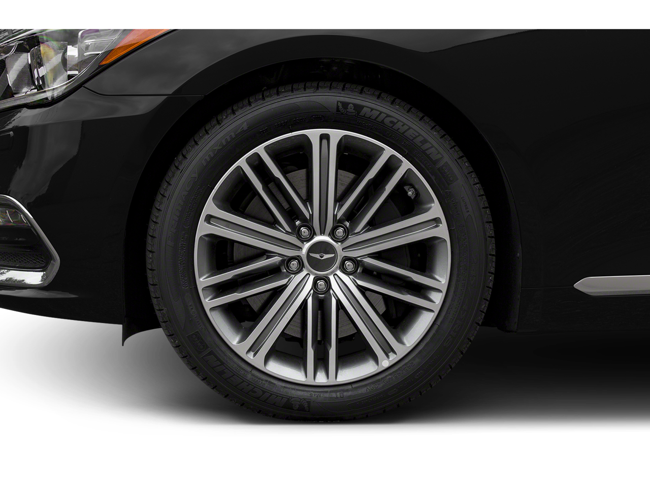 18 x 8J Alloy Wheels, 4-Wheel Disc Brakes, 7 Speakers, ABS brakes, Air Conditioning, Alloy wheels, AM/FM radio: SiriusXM, Android Auto & Apple CarPlay, Anti-whiplash front head restraints, Auto High-beam Headlights, Auto tilt-away steering wheel, Auto-dimming door mirrors, Auto-dimming Rear-View mirror, Automatic temperature control, Brake assist, Bumpers: body-color, Compass, Delay-off headlights, Driver door bin, Driver vanity mirror, Dual front impact airbags, Dual front side impact airbags, Electronic Stability Control, Emergency communication system: Genesis Connected Services, Exterior Parking Camera Rear, Four wheel independent suspension, Front anti-roll bar, Front Bucket Seats, Front Center Armrest, Front dual zone A/C, Front reading lights, Fully automatic headlights, Garage door transmitter: HomeLink, Heated door mirrors, Heated Front Bucket Seats, Heated front seats, High intensity discharge headlights: Bi-Xenon, Illuminated entry, Knee airbag, Leather Seating Surfaces, Leather Shift Knob, Leather steering wheel, Low tire pressure warning, Memory seat, Navigation System, Occupant sensing airbag, Outside temperature display, Overhead airbag, Overhead console, Panic alarm, Passenger door bin, Passenger vanity mirror, Power door mirrors, Power driver seat, Power passenger seat, Power steering, Power windows, Radio data system, Radio: AM/FM/HD/SiriusXM/MP3 Audio System, Rain sensing wipers, Rear anti-roll bar, Rear reading lights, Rear seat center armrest, Rear side impact airbag, Rear window defroster, Remote keyless entry, Security system, Speed control, Speed-sensing steering, Speed-Sensitive Wipers, Steering wheel memory, Steering wheel mounted audio controls, Tachometer, Telescoping steering wheel, Tilt steering wheel, Traction control, Trip computer, Turn signal indicator mirrors, and Variably intermittent wipers.