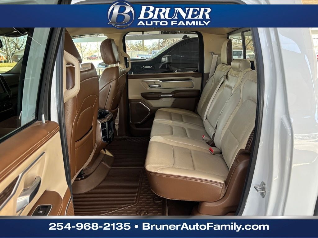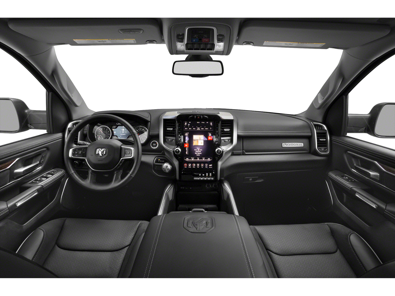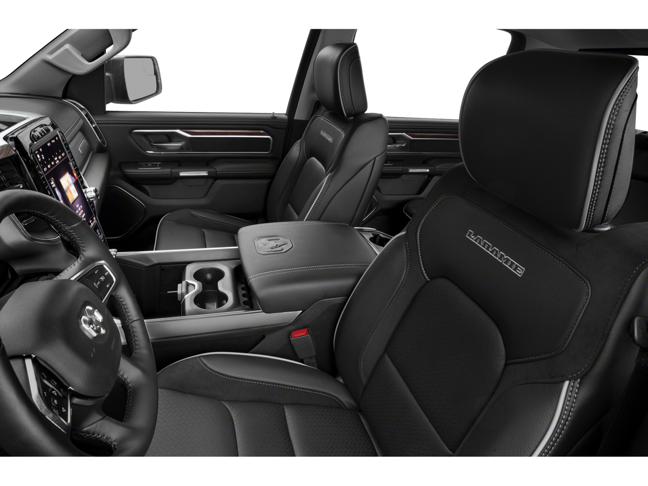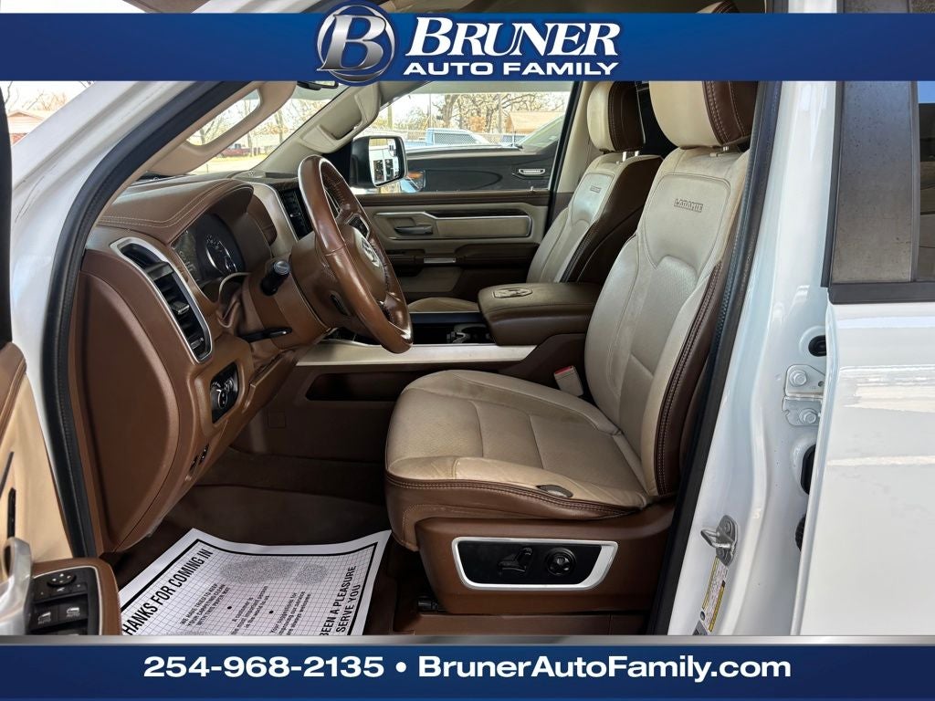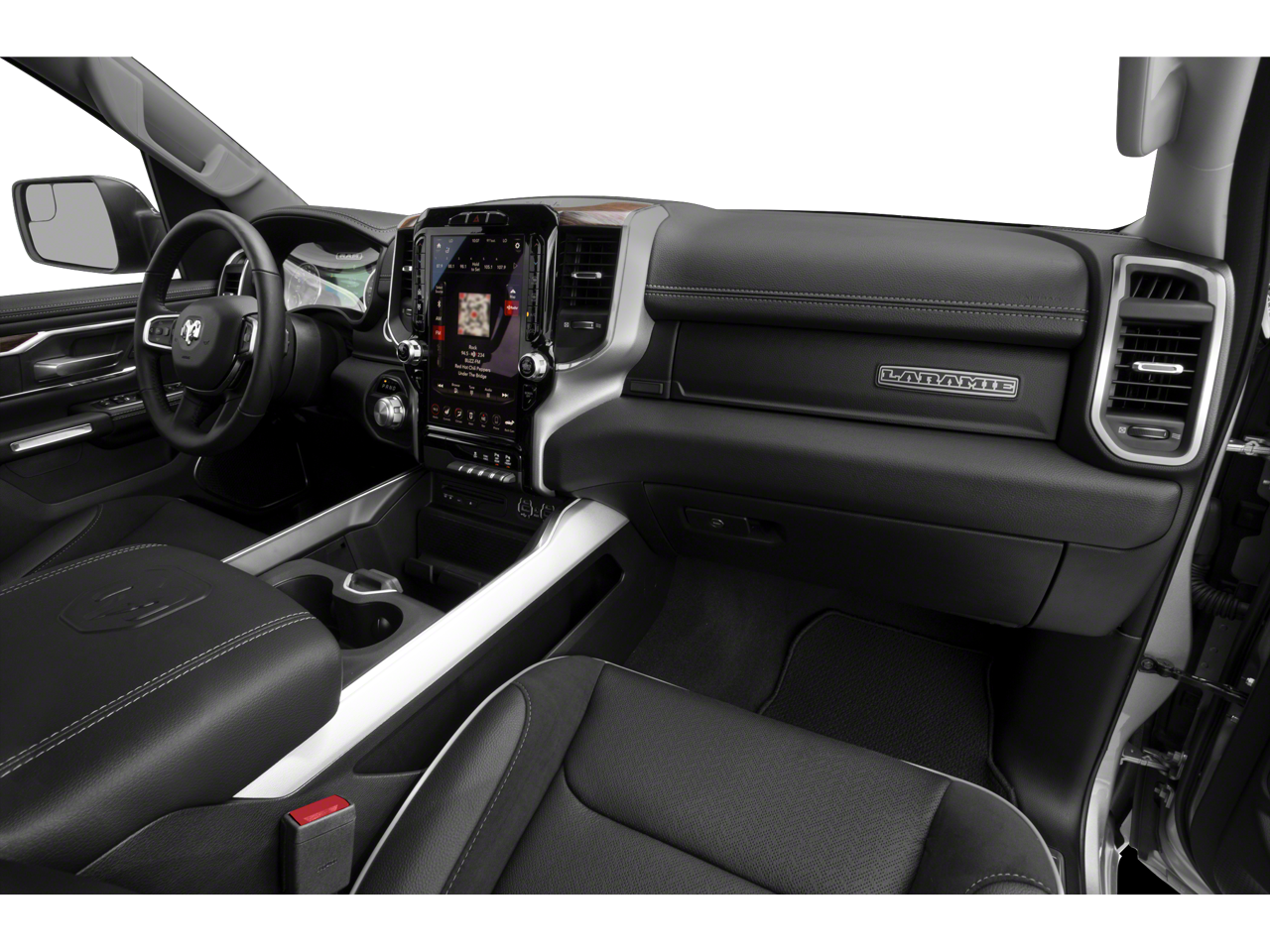Laramie Level 1 Equipment Group, Protection Group (Tow Hooks), Quick Order Package 25H Laramie, #1 Seat Foam Cushion, 10 Speakers, 3 Rear Seat Head Restraints, 3.21 Rear Axle Ratio, 33 Gallon Fuel Tank, 4 Way Front Headrests, 4-Wheel Disc Brakes, 48V Belt Starter Generator, 8.4 Touchscreen Display, ABS brakes, Adjustable pedals, Air Conditioning, Alloy wheels, AM/FM radio: SiriusXM, Apple CarPlay, Apple CarPlay/Android Auto, Audio memory, Auto-dimming door mirrors, Auto-dimming Rear-View mirror, Automatic temperature control, Brake assist, Bumpers: chrome, Compass, Delay-off headlights, Driver door bin, Driver Seat Memory, Driver vanity mirror, Dual front impact airbags, Dual front side impact airbags, Electronic Stability Control, Front & Rear Rubber Floor Mats, Front anti-roll bar, Front Center Armrest w/Storage, Front dual zone A/C, Front fog lights, Front reading lights, Front Seat Back Map Pockets, Front wheel independent suspension, Fully automatic headlights, Garage door transmitter, Google Android Auto, GPS Antenna Input, Heated door mirrors, Heated Front Seats, Heated front seats, Heated Steering Wheel, Heated steering wheel, Illuminated entry, Integrated Center Stack Radio, Leather steering wheel, Leather Trim 40/20/40 Bench Seat, Low tire pressure warning, Memory seat, Occupant sensing airbag, Outside temperature display, Overhead airbag, Overhead console, Panic alarm, ParkSense Front/Rear Park Assist w/Stop (DISC), ParkView Rear Back-Up Camera, Passenger door bin, Passenger vanity mirror, Pedal memory, Power 4-Way Driver Lumbar Adjust, Power 4-Way Passenger Lumbar Adjust, Power 8-Way Driver & Passenger Seats, Power door mirrors, Power driver seat, Power passenger seat, Power steering, Power windows, Radio data system, Radio: Uconnect 4 w/8.4 Display, Rear anti-roll bar, Rear seat center armrest, Rear step bumper, Rear window defroster, Remote keyless entry, Security system, SiriusXM Satellite Radio, Speed control, Split folding rear seat, Steering wheel mounted audio controls, Tachometer, Telescoping steering wheel, Tilt steering wheel, Traction control, Trip computer, Turn signal indicator mirrors, Variably intermittent wipers, Ventilated Front Seats, Ventilated front seats, Voltmeter, Wheels: 18 x 8 Aluminum Base Painted, and Wheels: 20 x 9 Premium Paint/Polished.