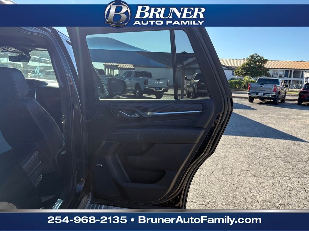 License Plate Front Mounting Package, Max Trailering Package (Extra Capacity Cooling System), Preferred Equipment Group 5SA (12-Way Power Seat Adjusters, 15 Diagonal Multi-Color Head-Up Display, 2 Presets For Outside Rearview Mirrors, 3rd Row 60/40 Power-Folding Split-Bench Seat, Bright Front & Rear Door Sill Plates, Chrome Door Handles w/Body-Color Strip, Dual Exhaust System, Galvano Bodyside Moldings, Hands-Free Power Programmable Rear Liftgate, HD Surround Vision, Heated & Ventilated Driver & Front Passenger Seats, Heated 2nd Row Outboard Position Seats, Heated Automatic Steering Wheel, Heated Driver & Front Passenger Seats, Hill Descent Control, Inside Rear-View Auto-Dimming Mirror, Outside Heated Power-Adjustable Mirrors, Power Release 2nd Row Bucket Seats, Power Tilt & Telescopic Steering Column, Rear Pedestrian Alert, Safety Alert Seat, and Universal Home Remote), 4WD, 14 Speakers, 3.23 Rear Axle Ratio, 3rd row seats: split-bench, 4-Wheel Disc Brakes, ABS brakes, Adaptive suspension, Air Conditioning, Air Ride Adaptive Suspension, Alloy wheels, AM/FM radio: SiriusXM with 360L, Apple CarPlay/Android Auto, Auto High-beam Headlights, Auto-dimming door mirrors, Auto-dimming Rear-View mirror, Auto-leveling suspension, Automatic Emergency Braking, Automatic temperature control, Bodyside moldings, Bose 14-Speaker Surround w/CenterPoint, Brake assist, Bumpers: body-color, Compass, Delay-off headlights, Driver door bin, Driver vanity mirror, Dual front impact airbags, Dual front side impact airbags, Dual-Pane Panoramic Power Sunroof, Electronic Stability Control, Emergency communication system: OnStar and GMC connected services capable, Floor Console, Following Distance Indicator, Forward Collision Alert, Four wheel independent suspension, Front & Rear Park Assist, Front anti-roll bar, Front Bucket Seats, Front Center Armrest, Front dual zone A/C, Front fog lights, Front Pedestrian Braking, Front reading lights, Fully automatic headlights, Garage door transmitter, HD Radio, Heads-Up Display, Heated door mirrors, Heated front seats, Heated rear seats, Heated steering wheel, Hitch Guidance w/Hitch View, Illuminated entry, In-Vehicle Trailering App, Integrated Trailer Brake Controller, IntelliBeam Automatic High Beam On/Off, Jet Black Interior Trim, Lane Change Alert w/Side Blind Zone Alert, Lane Keep Assist w/Lane Departure Warning, Leather steering wheel, Low tire pressure warning, Magnetic Ride Control Suspension, Memory seat, Navigation System, Occupant sensing airbag, Outside temperature display, Overhead airbag, Overhead console, Panic alarm, Passenger door bin, Passenger vanity mirror, Perforated Leather Seating Surfaces, Power door mirrors, Power driver seat, Power Liftgate, Power passenger seat, Power steering, Power windows, Power-Retractable Assist Steps, Radio: AM/FM/SiriusXM w/Navigation, Rain sensing wipers, Rear air conditioning, Rear anti-roll bar, Rear Cross Traffic Alert, Rear reading lights, Rear window defroster, Rear window wiper, Remote keyless entry, Roof rack: rails only, Security system, SiriusXM w/360L, Speed control, Speed-sensing steering, Split folding rear seat, Spoiler, Steering wheel memory, Steering wheel mounted audio controls, Tachometer, Telescoping steering wheel, Tilt steering wheel, Traction control, Trailer Side Blind Zone Alert, Trip computer, Turn signal indicator mirrors, Variably intermittent wipers, Ventilated front seats, Voltmeter, Wheel Locks, Wheels: 20 x 9 6-Spoke Polished Aluminum, and Wheels: 22 x 9 Bright Machined Aluminum.