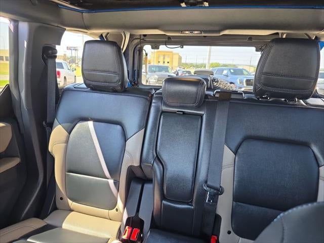 Off-Road Icon! 2023 Ford Bronco Wildtrak 4WD | 2.7L V8 Power & Low Miles in Brownwood, TXAre you ready to unleash your inner adventurer on the rugged Brown County trails? This striking Velocity Blue Metallic 2023 Ford Bronco Wildtrak at Bruner Auto Group is the ultimate 4WD machine for drivers in Brownwood, Early, Comanche, and Coleman. With a Clean CARFAX One-Owner history and only 21,390 miles, this low-mileage off-roader is sitting 9,133 miles below the market average. Whether you're navigating the downtown square or heading out to Lake Brownwood State Park, this Bronco Wildtrak provides the perfect blend of modern technology and legendary heritage.Built for the Wild: Standard Sasquatch Package & HOSS 3.0The Wildtrak isn't just a trim; its a dedicated high-speed off-road specialist designed to dominate any terrain:High-Performance Power: Equipped with the potent 2.7L EcoBoost V6 engine, delivering a commanding 330 horsepower and 415 lb-ft of torque for effortless climbing and highway merging.Sasquatch Package Standard: Features 35-inch mud-terrain tires on 17-inch black high-gloss aluminum beadlock-capable wheels, electronic-locking front and rear axles, and high-clearance fender flares.HOSS 3.0 Suspension: Includes Bilstein Position-Sensitive Dampers, front powder-coated steel bumpers, and steel bash plates for ultimate underbody protection.G.O.A.T. Modes: The Terrain Management System features 7 G.O.A.T. Modes (Goes Over Any Type of Terrain), including a dedicated Baja mode for high-speed desert-style runs.Luxury Meets Utility: Black Onyx Premium InteriorStep inside a cabin that is as refined as it is durable, perfect for both daily commutes and weekend expeditions:Advanced Connectivity: Features a massive 12-inch LCD touchscreen with SYNC 4, offering Wireless Apple CarPlay and Android Auto compatibility.Premium Comfort: Includes Black Onyx heated leather-trimmed seats, a leather-wrapped steering wheel, and dual-zone automatic climate control for those intense Texas summers.Modern Safety: Equipped with Ford Co-Pilot360, featuring a 360-Degree Camera, Blind Spot Information System (BLIS), and Lane-Keeping System for total peace of mind.Utility Ready: Features upfitter switches for your aftermarket lighting and accessories, along with a towing capacity of up to 3,500 lbs.Why Shop at Bruner Auto Group in Early/Brownwood?Located at 224 Early Blvd, Early, TX 76802, Bruner Auto Group has been a trusted cornerstone of the Central Texas community for generations. This Velocity Blue Bronco (Stock #G254623A) has been meticulously inspected and is ready for its next journey.Stock #: G254623AMileage: 21,390Exterior: Velocity Blue MetallicLocation: Brownwood / Early, TXLow-mileage Wildtrak Broncos move fast in West-Central Texas! Click Check Availability or call us today to schedule your VIP test drive. We offer competitive trade-in values and financing options for all credit types. Discover why drivers from Comanche to Coleman choose Bruner for their next 4WD adventure!