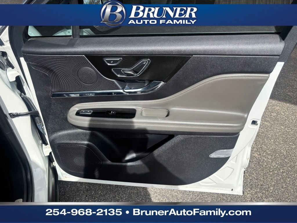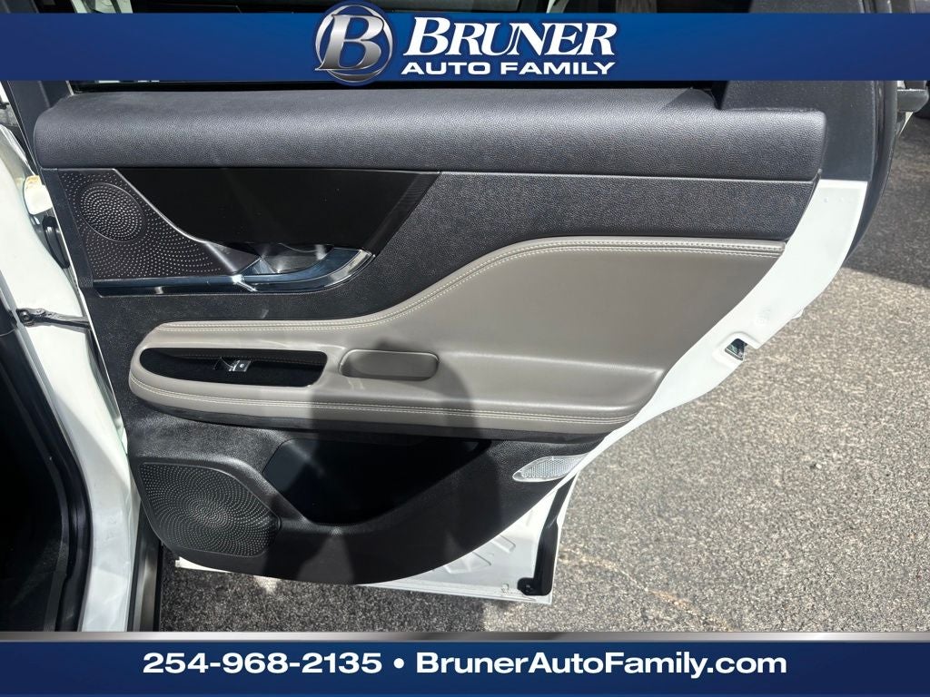 Equipment Group 100A, 10 Speakers, 3.81 Axle Ratio, 4-Wheel Disc Brakes, ABS brakes, Air Conditioning, Alloy wheels, AM/FM radio: SiriusXM, Auto High-beam Headlights, Auto-dimming Rear-View mirror, Automatic temperature control, Brake assist, Bumpers: body-color, Compass, Delay-off headlights, Driver door bin, Driver vanity mirror, Dual front impact airbags, Dual front side impact airbags, Electronic Stability Control, Emergency communication system: SYNC 4 911 Assist, Four wheel independent suspension, Front anti-roll bar, Front Bucket Seats, Front Center Armrest, Front dual zone A/C, Front reading lights, Fully automatic headlights, Heated door mirrors, Heated front seats, Illuminated entry, Knee airbag, Leather steering wheel, Lincoln Premium Audio System Subwoofer Delete, Lincoln Soft Touch Heated Comfort Seats, Low tire pressure warning, Memory seat, Navigation system: Connected Navigation (3-year trial), Occupant sensing airbag, Outside temperature display, Overhead airbag, Overhead console, Panic alarm, Passenger door bin, Passenger vanity mirror, Power door mirrors, Power driver seat, Power Liftgate, Power passenger seat, Power steering, Power windows, Radio data system, Radio: Lincoln Premium Audio System w/MP3, Rear anti-roll bar, Rear Parking Sensors, Rear reading lights, Rear seat center armrest, Rear window defroster, Rear window wiper, Remote keyless entry, Security system, SiriusXM Radio, Speed control, Speed-sensing steering, Speed-Sensitive Wipers, Split folding rear seat, Spoiler, Steering wheel mounted A/C controls, Steering wheel mounted audio controls, SYNC 4 Communications & Entertainment System, Tachometer, Telescoping steering wheel, Tilt steering wheel, Traction control, Trip computer, Variably intermittent wipers, and Wheels: 18 Warm Painted Alloy.