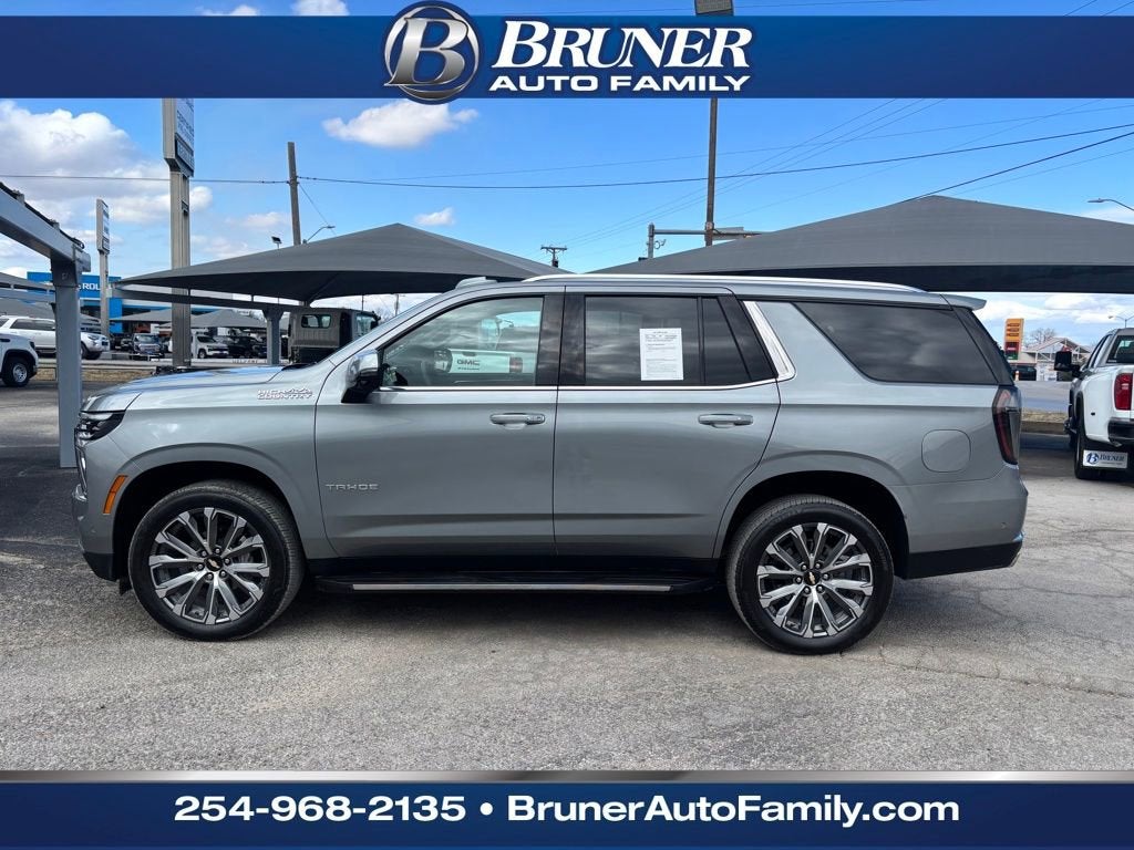 Certified. 2026 Chevrolet Tahoe High Country Sterling Gray Metallic RWD 10-Speed Automatic with Overdrive 3.0L I6 Black Leather. Clean CARFAX. CARFAX One-Owner. 22/26 City/Highway MPGThis 2026 Chevrolet Tahoe is located at our STEPHENVILLE location where we have a wide variety of QUALITY new and used vehicles. Bruner Auto Family, Your Family Since 1928!Chevrolet Certified Pre-Owned Details:* 172 Point Inspection* Warranty Deductible: $0* Powertrain Limited Warranty: 72 Month/100,000 Mile (whichever comes first) from original in-service date* 24 months/24,000 miles (whichever comes first) Certified Pre-Owned Scheduled Maintenance Plan and 3 days/150 miles (whichever comes first) Vehicle Exchange Program. SiriusXM 3-month trial subscription.* Transferable Warranty* Limited Warranty: 12 Month/12,000 Mile (whichever comes first) from certified purchase date* Roadside Assistance* Vehicle HistoryLicense Plate Front Mounting Package, Preferred Equipment Group 3LZ (15 Diagonal Multi-Color Head-Up Display, 1st and 2nd Row Color-Keyed Carpeted Floor Mats, 3-Spoke Wrapped Steering Wheel, 3rd Row 60/40 Power-Folding Split-Bench Seat, Bose 10-Speaker Centerpoint Surround Audio System Feature, Bright Front and Rear Door Sill Plates, Chrome Door Handles with Body-Color Strip, Color-Keyed Carpeting Floor Covering, Dual Exhaust System, Floor Console, Front Bucket Seats, Front LED Fog Lamps, Frontal Driver and Outboard Passenger Airbags, Heated 2nd Row Outboard Seats, Heated Steering Wheel, Inside Rearview Auo-Dimming Rear Camera Mirror, Interior Camera, Key Card, LED Headlamps with LED Daytime Running Lamps, LED Tail Lamps, Magnetic Ride Control Suspension, Memory Settings, Outside Heated Power-Adjustable Mirrors, Power Release 2nd Row Bucket Seats, Power Tilt and Telescopic Steering Column, Rear Power Liftgate, Remote Start, Set of 4 Wheel Locks, SiriusXM with 360L Trial Subscription, Universal Home Remote, Wheels: 22 x 9 Bright Machined Aluminum, and Wireless Phone Charging), Chevrolet Certified Pre-Owned Certified, Black Leather, 1.5 KW Heater/Defrost Air System, 10 Speakers, 250-Amp Alternator, 3.23 Rear Axle Ratio, 3rd row seats: split-bench, 4-Way Power Driver Lumbar Seat Adjuster, 4-Way Power Front Passenger Lumbar Seat Adjuster, 4-Wheel Disc Brakes, 8-Way Power Driver Seat Adjuster, 8-Way Power Front Passenger Seat Adjuster, 850 Cold-Cranking Amps Battery, ABS brakes, Adaptive suspension, Air Conditioning, Alloy wheels, AM/FM radio: SiriusXM with 360L, Apple CarPlay/Android Auto, Auto High-beam Headlights, Auto-dimming door mirrors, Auto-dimming Rear-View mirror, Auto-leveling suspension, Automatic temperature control, Brake assist, Bumpers: body-color, Compass, Delay-off headlights, Diesel B20 Fuel, Driver and Front Passenger Heated and Ventilated Seats, Driver door bin, Driver vanity mirror, Dual front impact airbags, Dual front side impact airbags, Electronic Stability Control, Emergency communication system: OnStar and Chevrolet connected services capable, Engine Block Heater, Exterior Parking Camera Rear, Four wheel independent suspension, Front anti-roll bar, Front Center Armrest, Front dual zone A/C, Front fog lights, Front reading lights, Fully automatic headlights, Garage door transmitter, Heads-Up Display, Heated door mirrors, Heated Driver and Front Passenger Seats, Heated front seats, Heated rear seats, Heated steering wheel, Illuminated entry, Low tire pressure warning, Memory seat, Navigation system: Google built-in compatibility (select service plan required, terms and limitations apply), Occupant sensing airbag, Outside temperature display, Overhead airbag, Overhead console, Panic alarm, Passenger door bin, Passenger vanity mirror, Perforated Leather Seat Trim, Power door mirrors, Power driver seat, Power Liftgate, Power passenger seat, Power steering, Power windows, Premium audio system: Chevrolet Infotainment 3 Premium, Radio data system, R